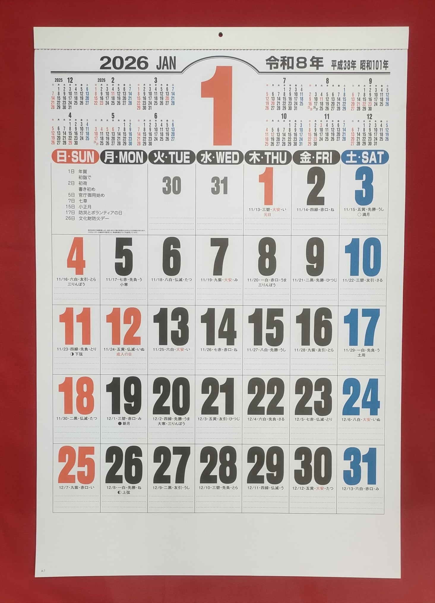 2026年カレンダー ジャンボ3色文字